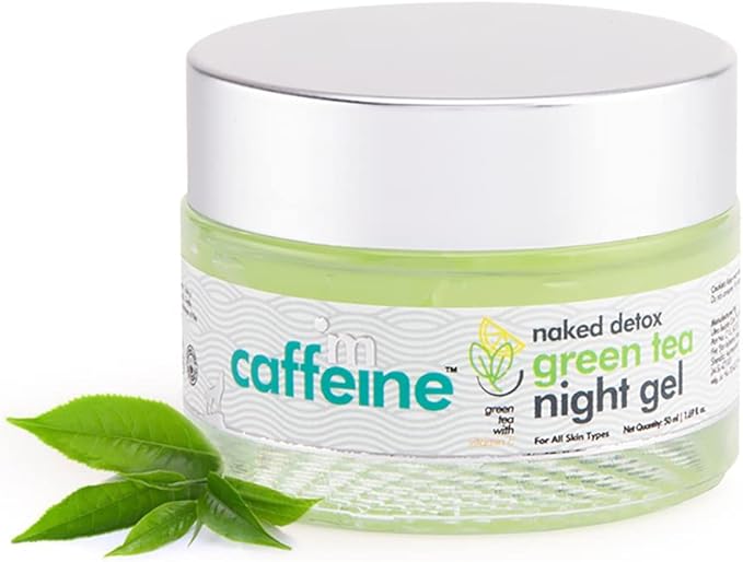 جل ليلي بالشاي الأخضر من شركة إم كافيين 50 مل مع فيتامين سي، ترطيب لمدة تصل إلى 72 ساعة ويقلل من الخطوط الدقيقة والبقع الداكنة، كريم ليلي برائحة مهدئة لبشرة متوهجة