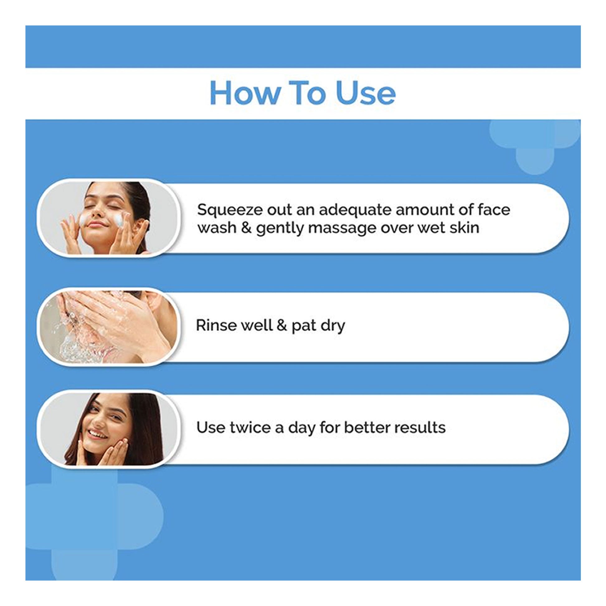 - Take a small amount of the face wash and massage gently onto your face in circular motions.