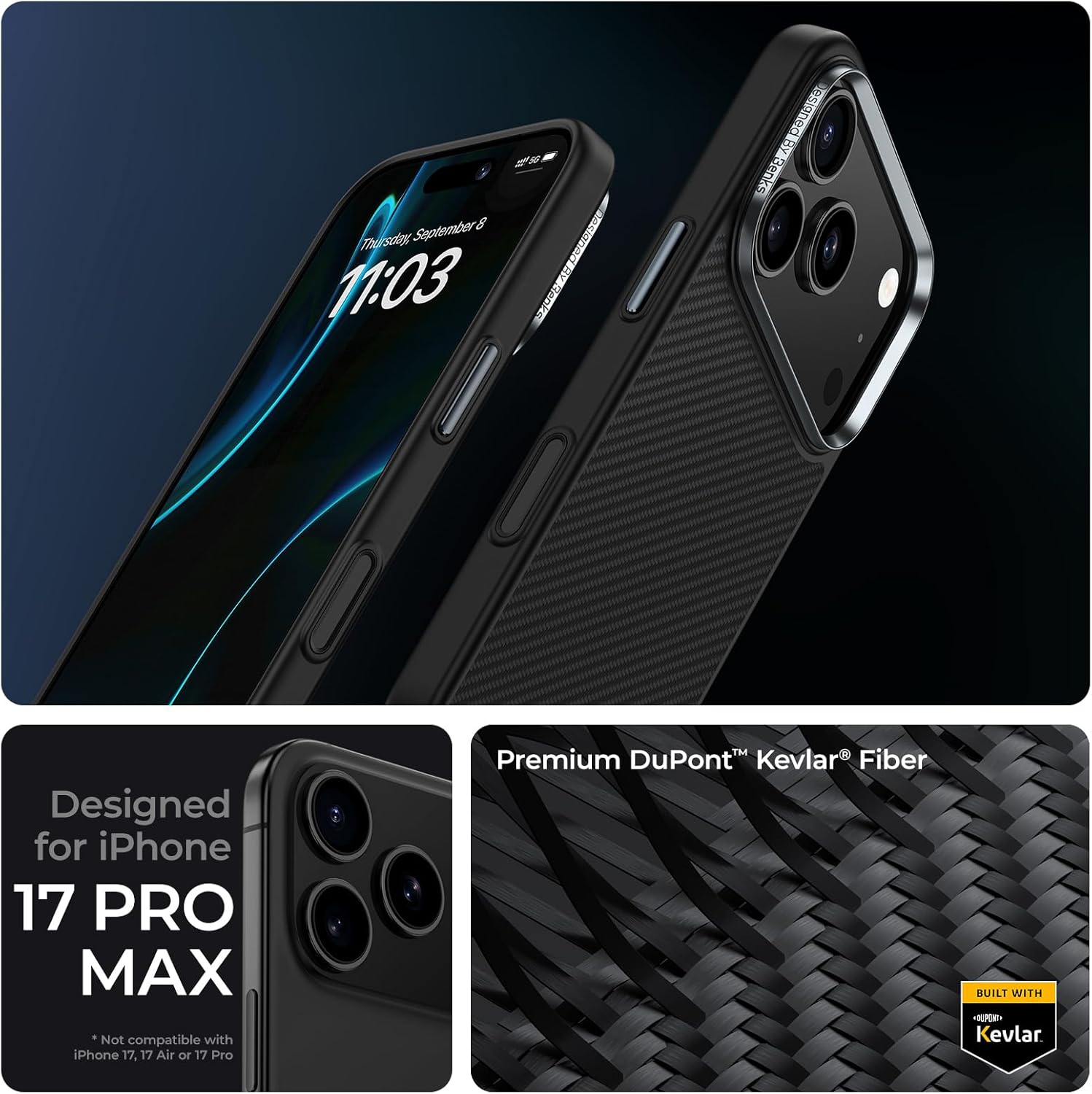 BENKS ArmorPro Case for iPhone 17 Pro & Pro Max with Camera Control Button, Military Grade Protective Case Built with Dupont Kevlar 600D Aramid Fiber