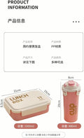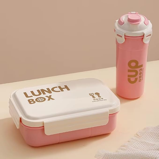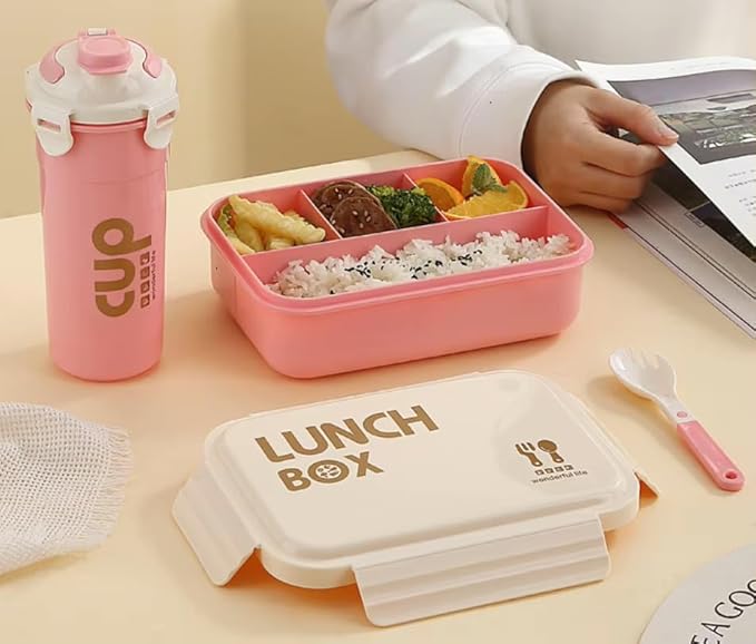 Big Capacity 4 Compartment Leakproof Tiffin Food Container Microwave Safe Bpa Free Kids And Adults Water Bottle and Lunch Box Set (Pink)