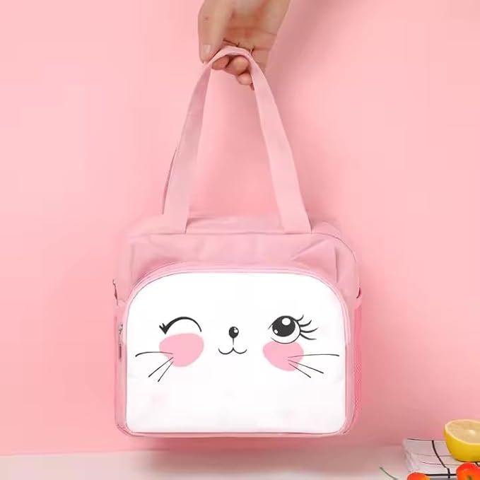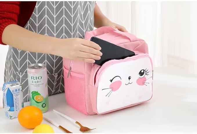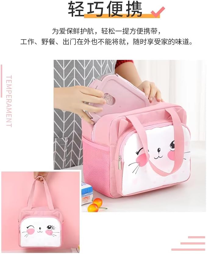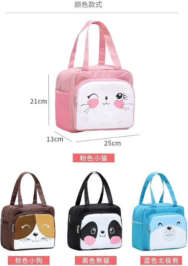 Cute Animal Cat Dag Bear Lunch Bags Small Cooler Bag Leak Proof Lunch Tote Hand bag Aluminum Foil And Water Proof For Kids and Adults (Pink)