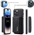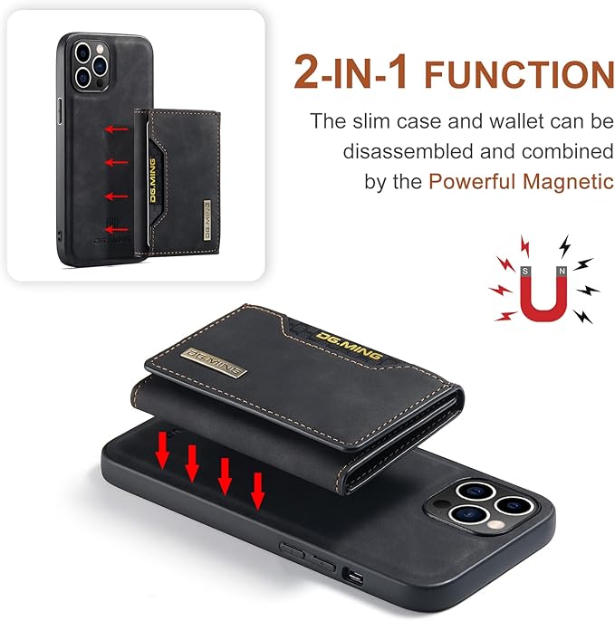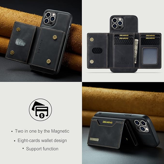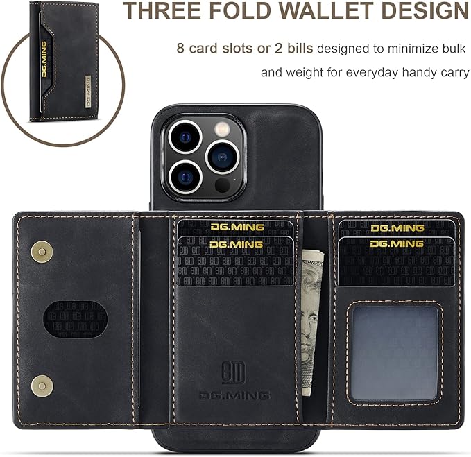 DG.MING Premium Leather Phone Case Back Cover Magnetic Detachable with Trifold Wallet Card Holder Pocket for iPhone 14 Pro Max (Black)