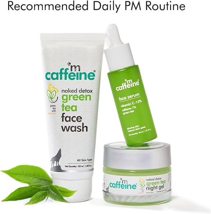 جل ليلي بالشاي الأخضر من شركة إم كافيين 50 مل مع فيتامين سي، ترطيب لمدة تصل إلى 72 ساعة ويقلل من الخطوط الدقيقة والبقع الداكنة، كريم ليلي برائحة مهدئة لبشرة متوهجة
