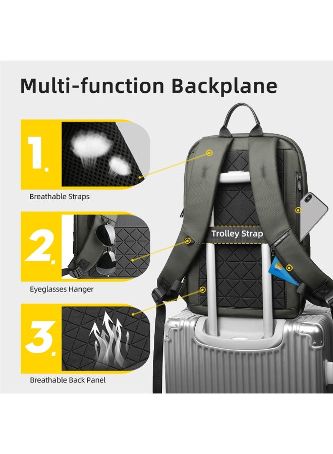Mobcos Back Pack Green 8966 Premium Waterproof Anti-Theft Laptop Backpack with USB Charging Port Ð Oxford Business Travel Backpack for Men & Women, Slim Lightweight Work & College Bag