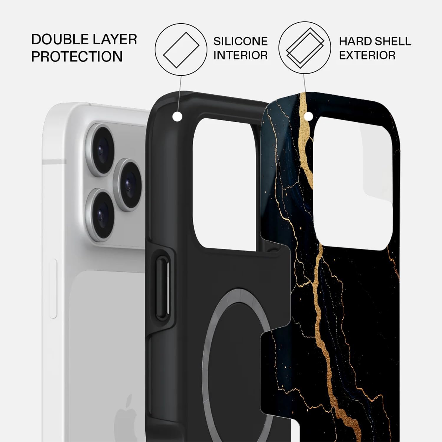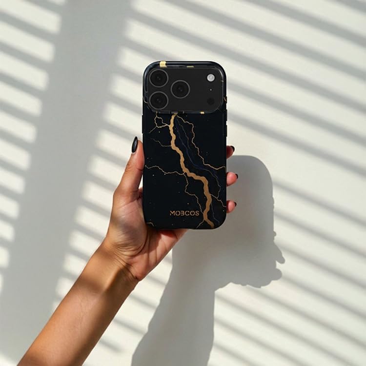 Mobcos iPhone 17 Pro Midnight Gold Premium Case Compatible with Hybrid Dual-Layer Hard Shell + Silicone Protection - Scratch-Resistant Shockproof Mobile Cover