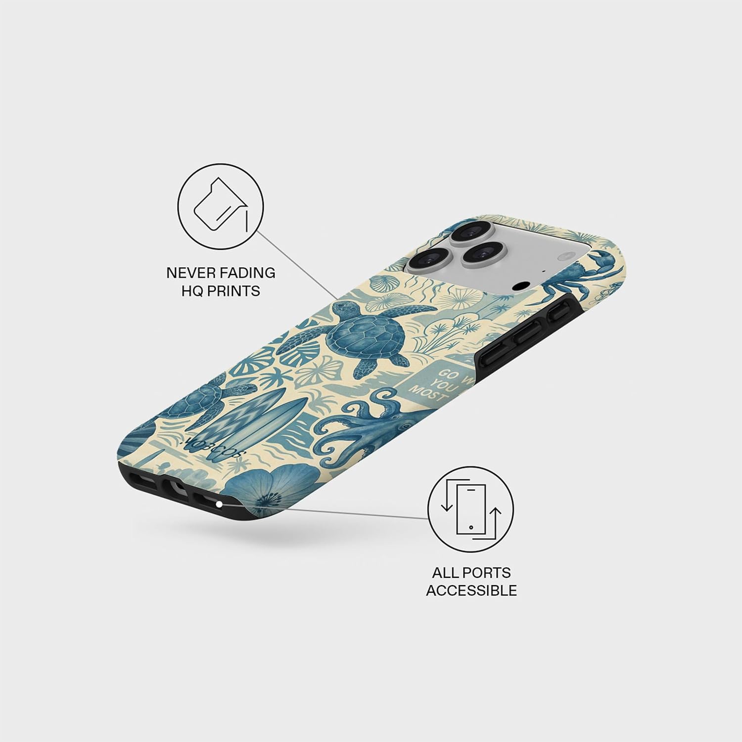 Mobcos iPhone 17 Pro Ocean Blueprint Premium Case Compatible with Hybrid Dual-Layer Hard Shell + Silicone Protection - Scratch-Resistant Shockproof Mobile Cover