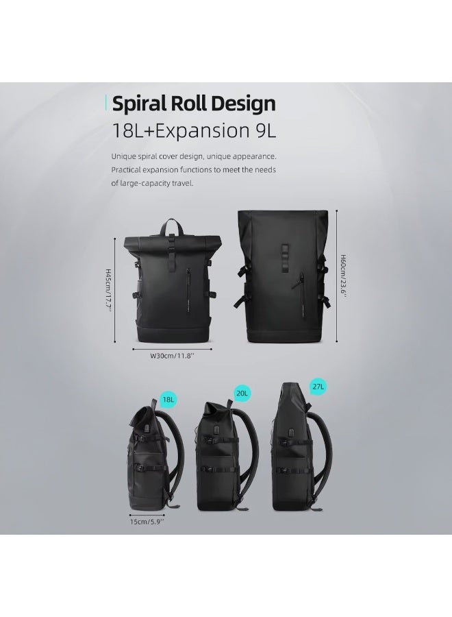 Mobcos Travel Big Back Pack Grey 8448 Expandable Waterproof Roll-Top Laptop Backpack with USB Charging Port Ð Anti-Theft Travel Backpack for Men & Women, Durable Oxford Material, 18LÐ27L Expandable Capacity, Business & Outdoor Daypack