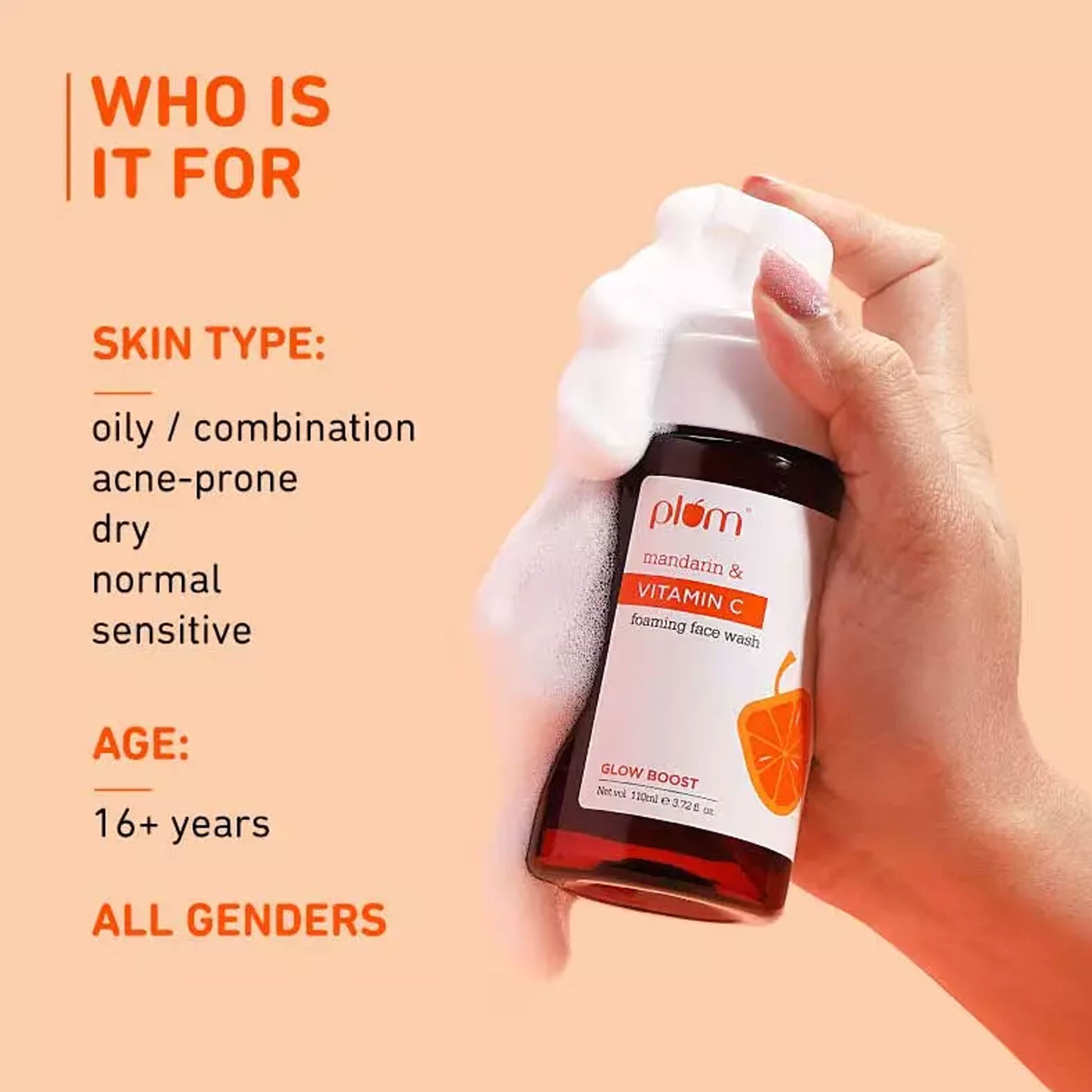 Plum Vitamin C Foaming Face Wash with Mandarin | Brightens Skin & Boosts Glow, 110ml | Sulphate-Free, Vegan