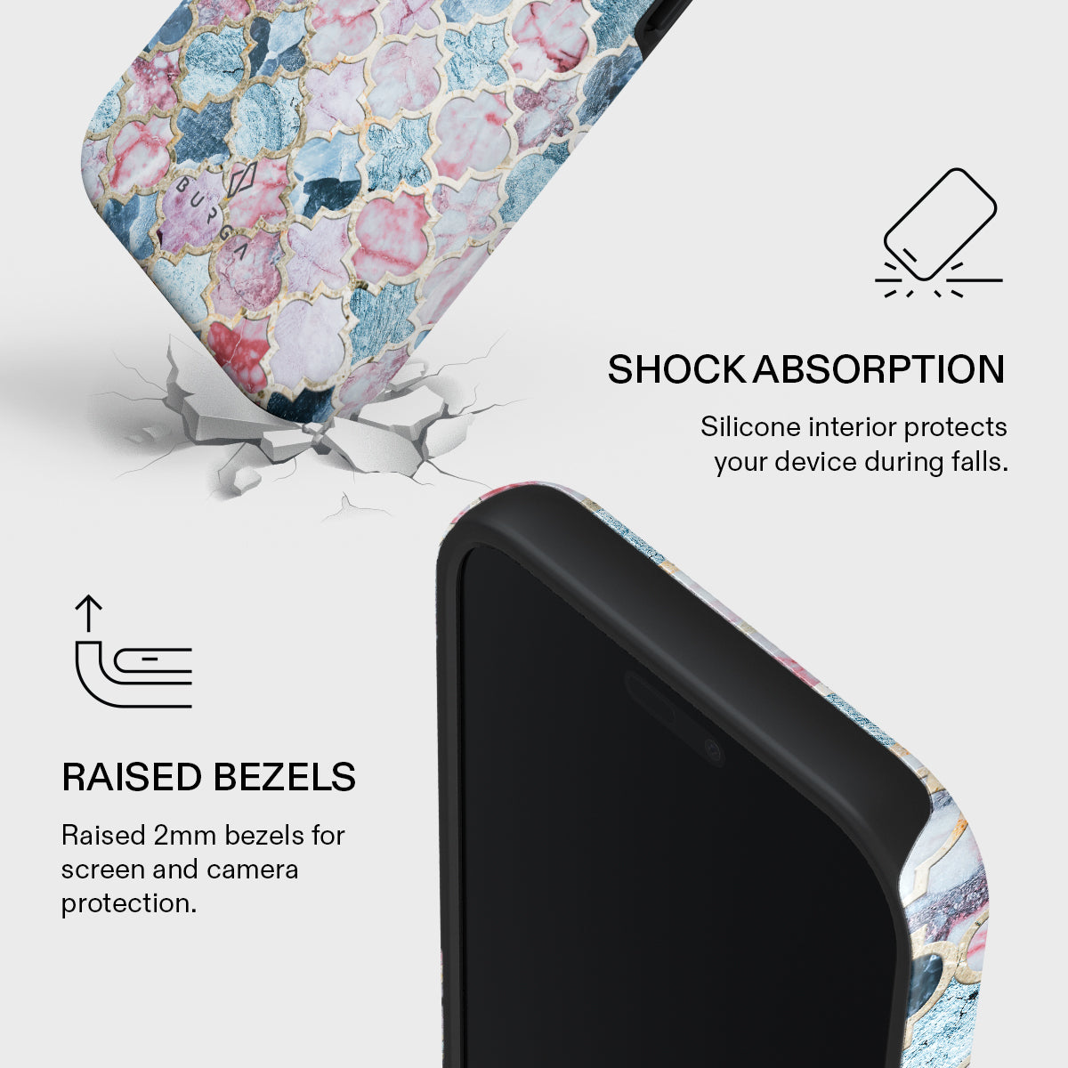 Exclusive 2-in-1 protection system – While the average case is made with either plastic or silicone, our phone cover is uniquely designed with both: a Dual-Layer hybrid structure. The inner layer of TPU silicone and a tough, military-grade PC outer shell provide unparalleled shock absorption, durability, and rugged defense against scratching, shattering, and breakage.
