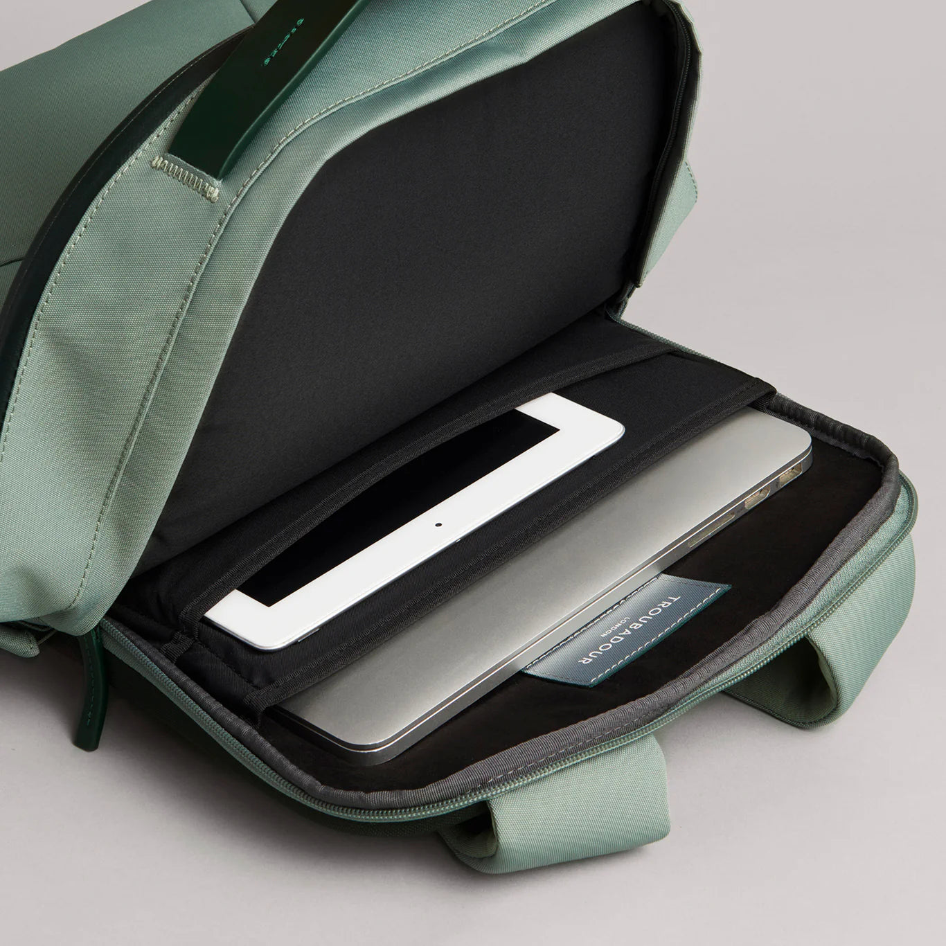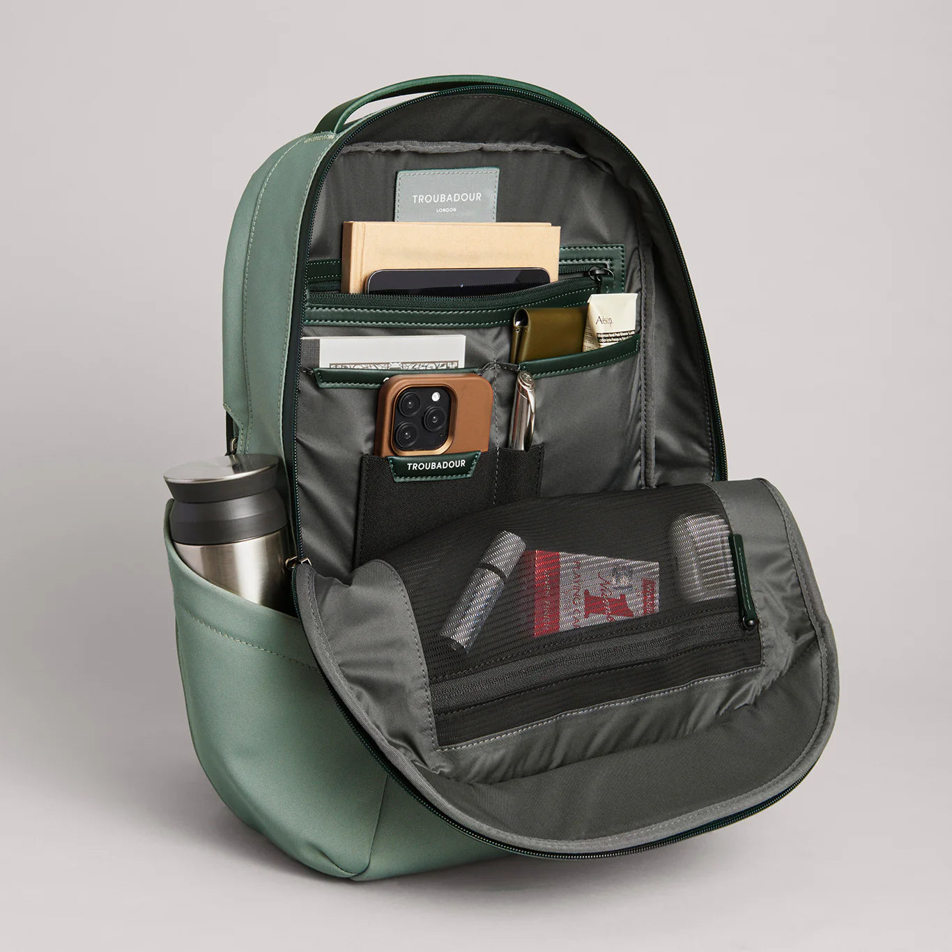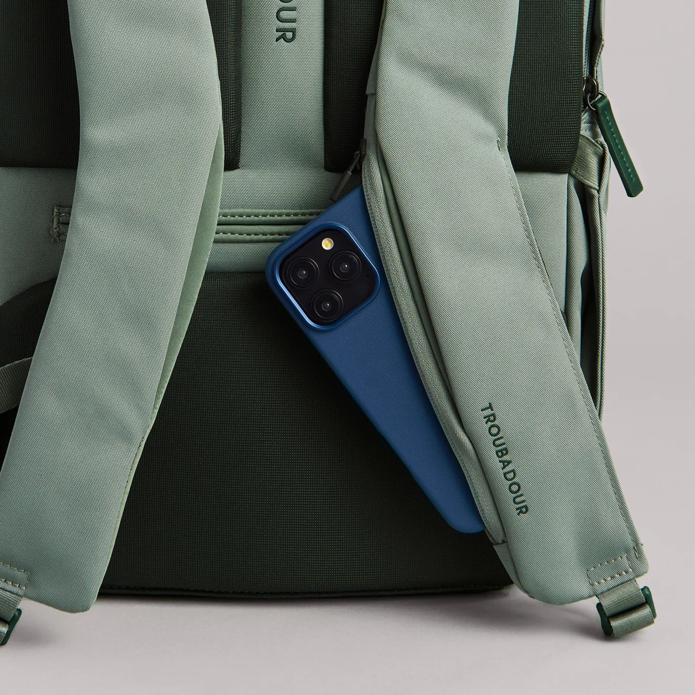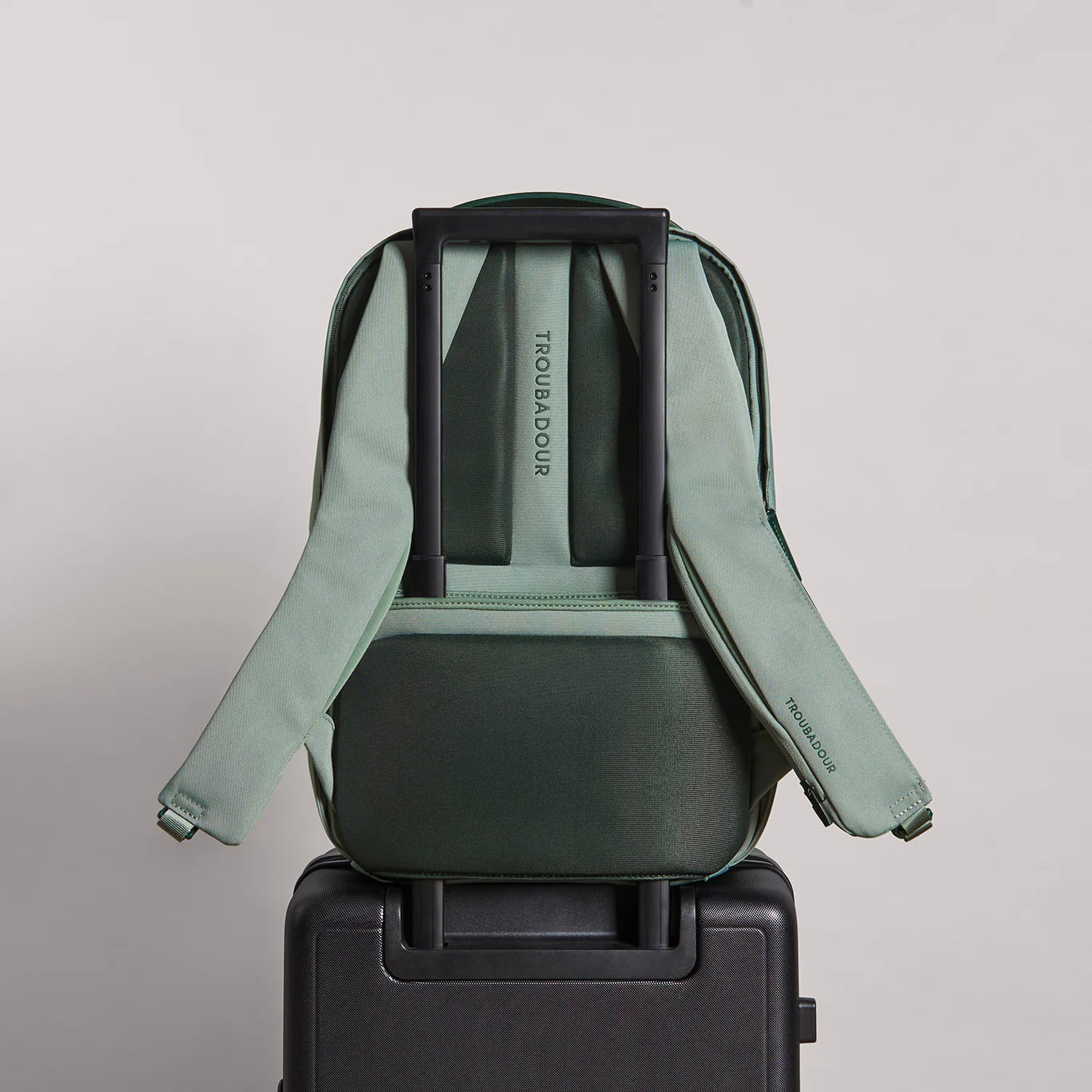 Troubadour Apex Compact Backpack Premium Vegan, Waterproof Material - Laptop Sleeve, Comfort Straps -Green Smoke